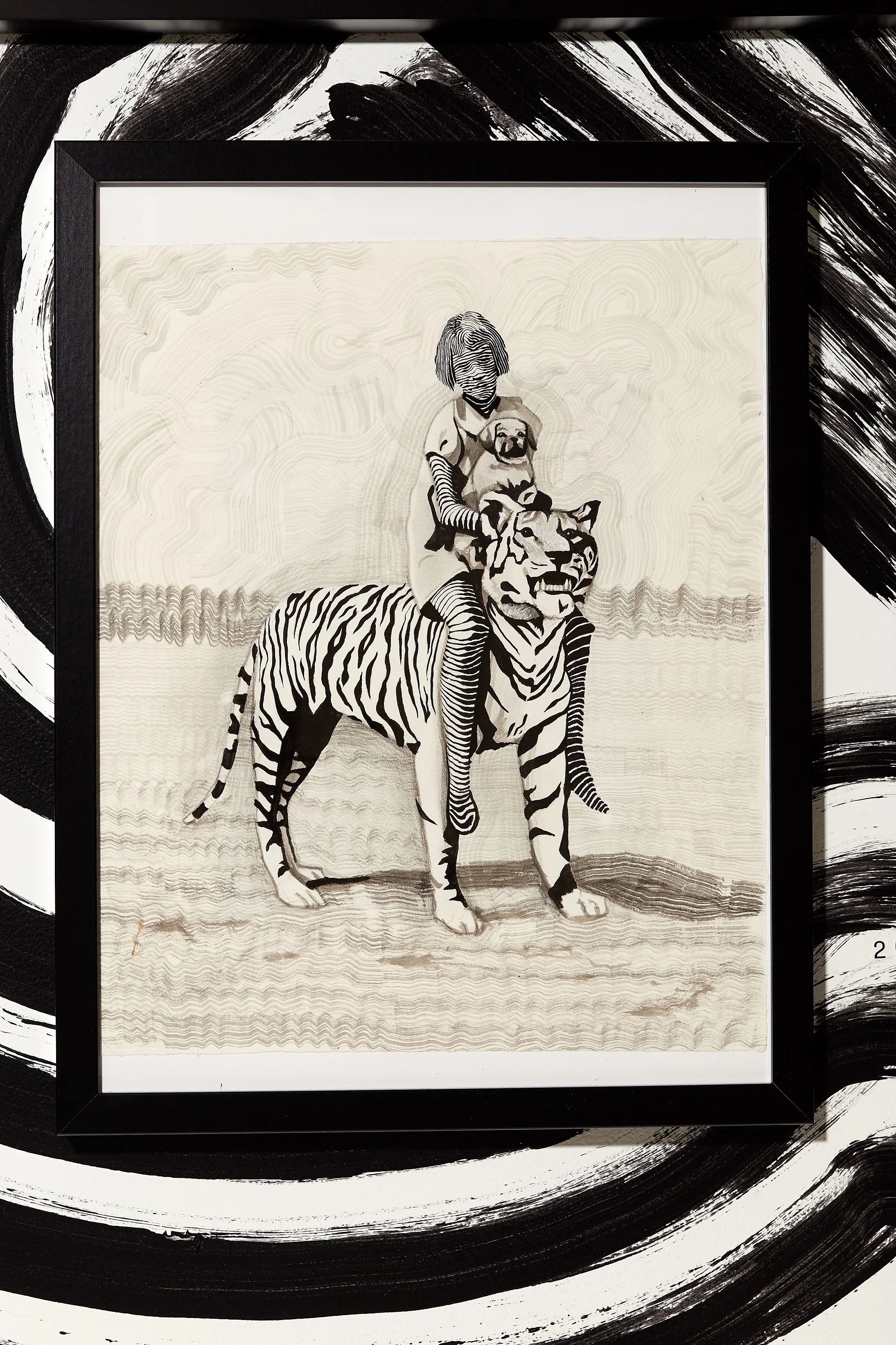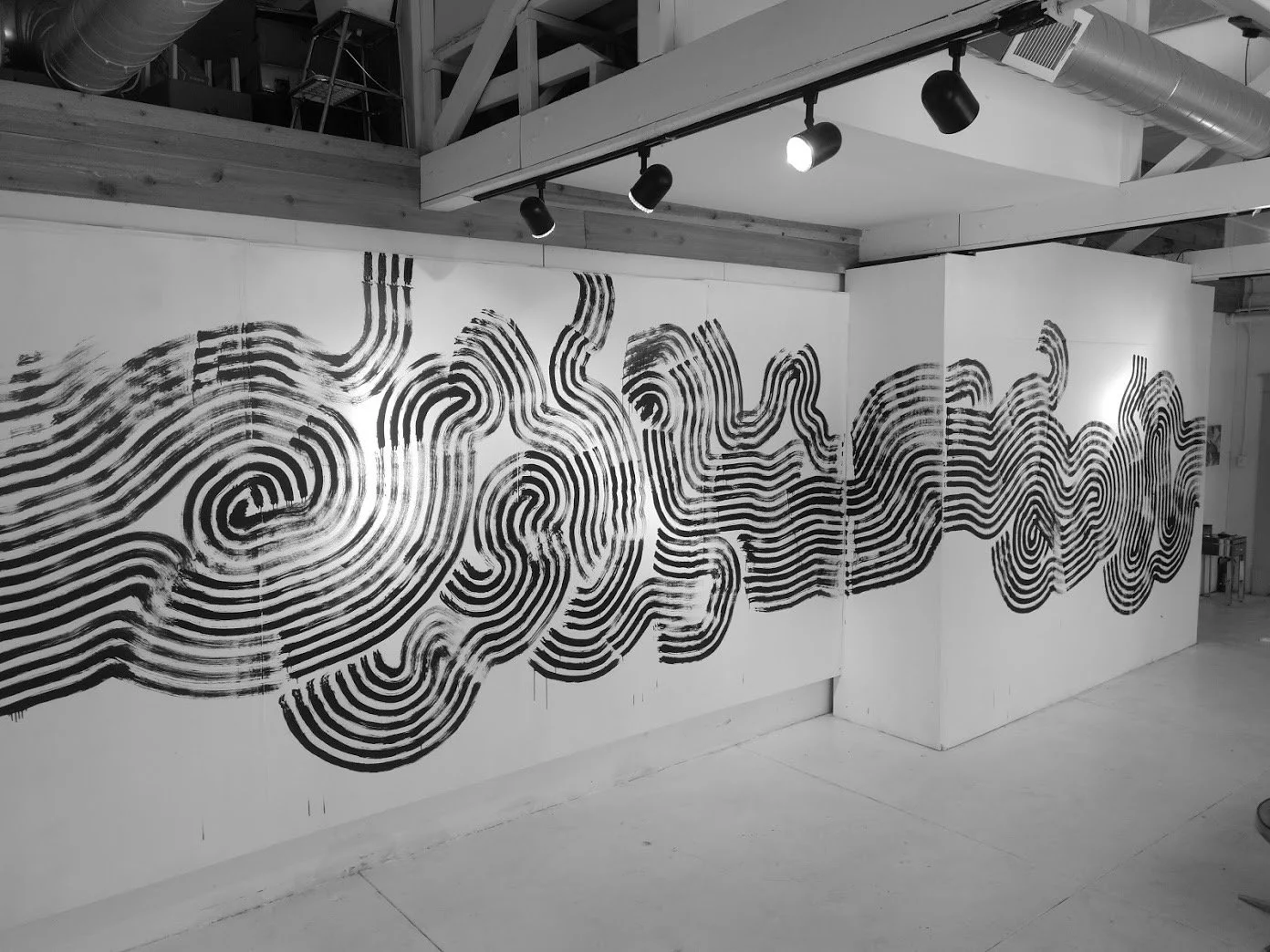 Before installing the artwork I painted a improvised mural throughout the entire gallery using black paint and a cut up broom. The artwork was then installed on top of the paintings.