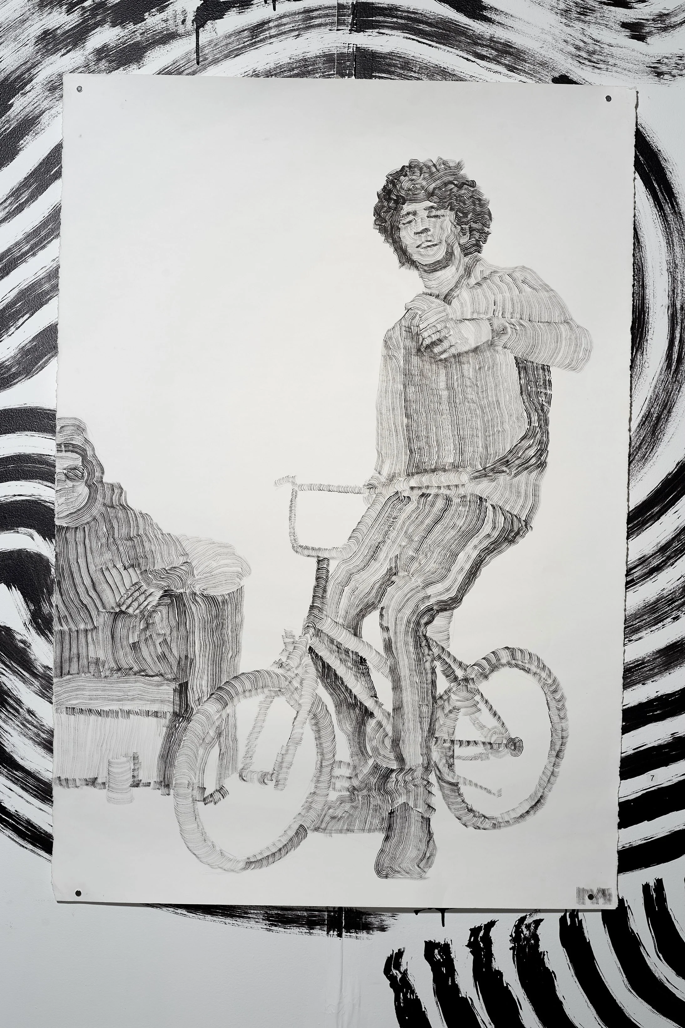 Solo Exhibtion in 2019. Curated by Abigail Justman and Jacob O’Kelley. I created an immersive mural installation improvised entirely with an cut up broom, that the artwork was installed over. Pieces in show were created using a variety of unique tools like a drillbrush my uniquely crafted tool and a frayed brush.